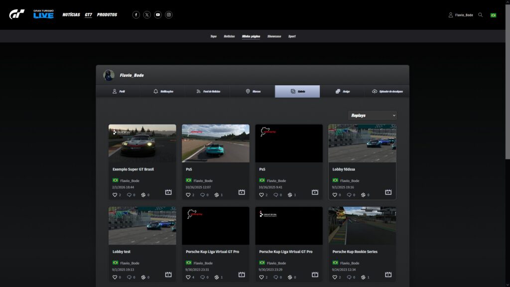 O link válido do replay é aquele gerado exclusivamente pelo sistema oficial do Gran Turismo 7, acessível por meio do site oficial do Gran Turismo, mediante login com a conta PSN do piloto.