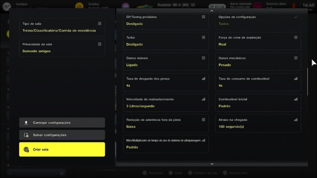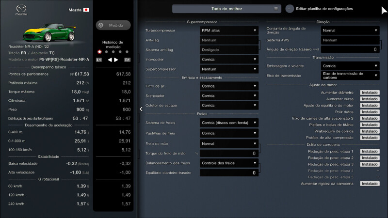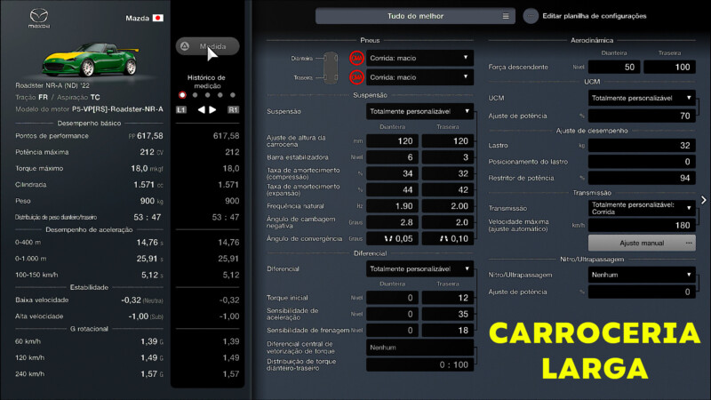 - Setup: Totalmente liberado (suspensão, câmbio, ECU, freios, etc.)